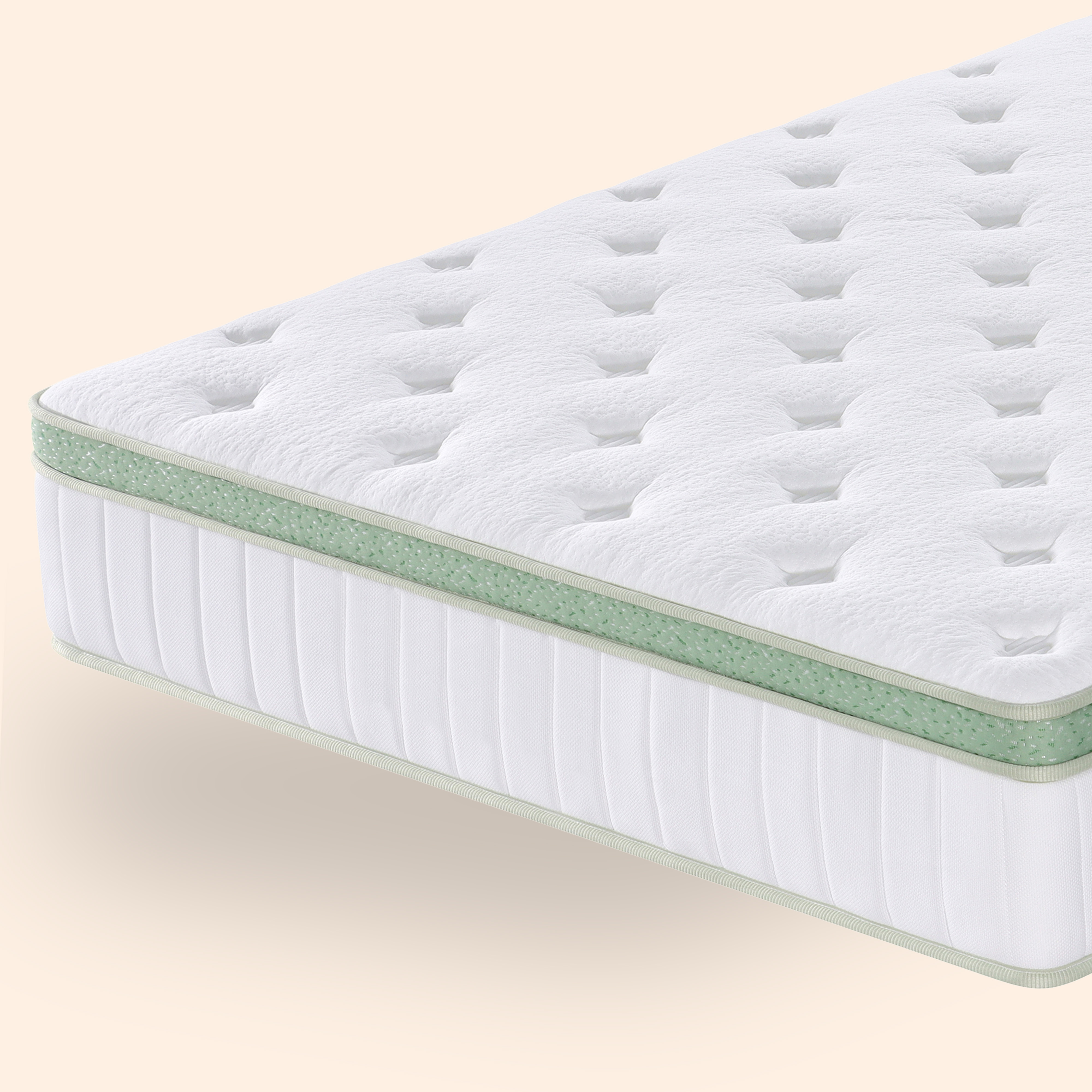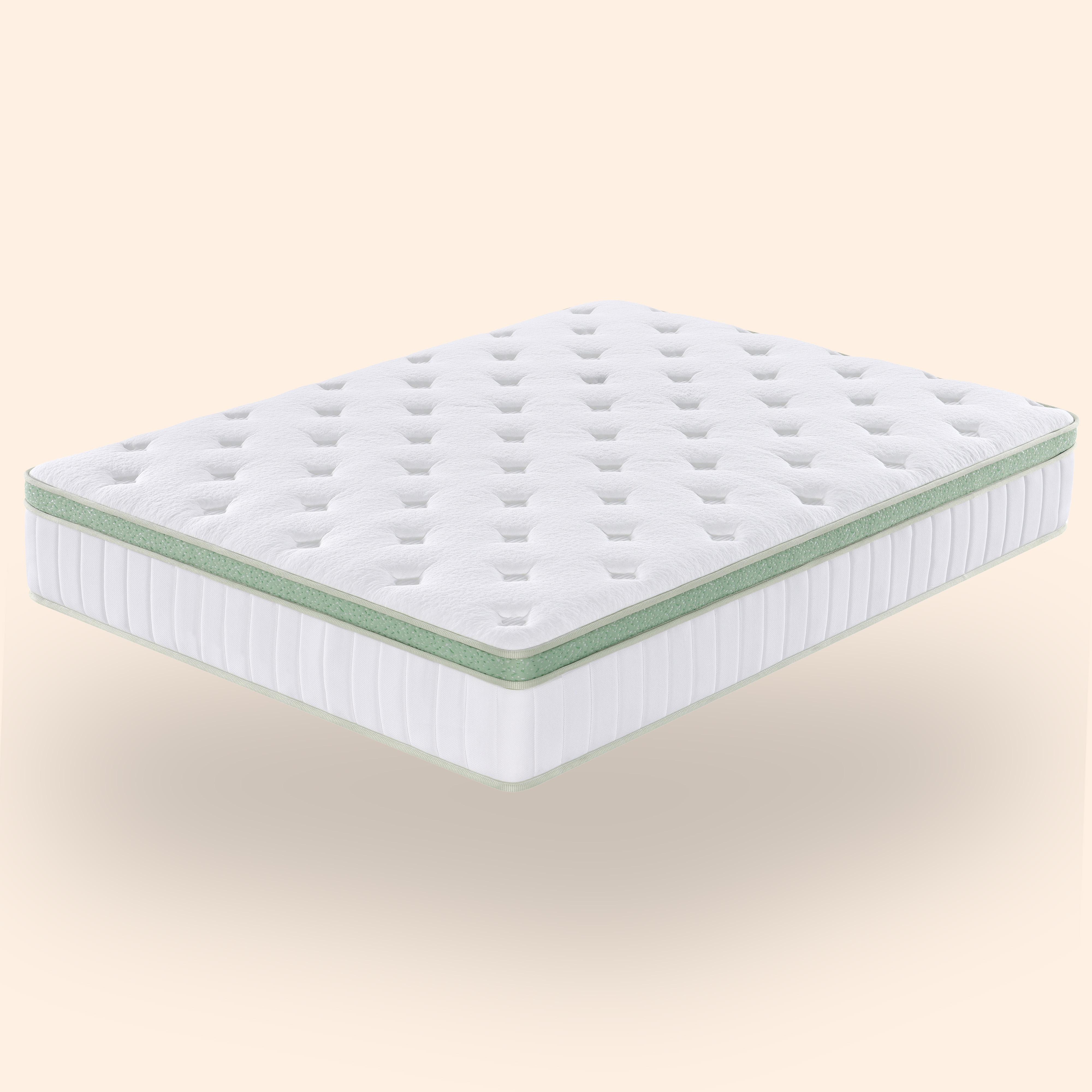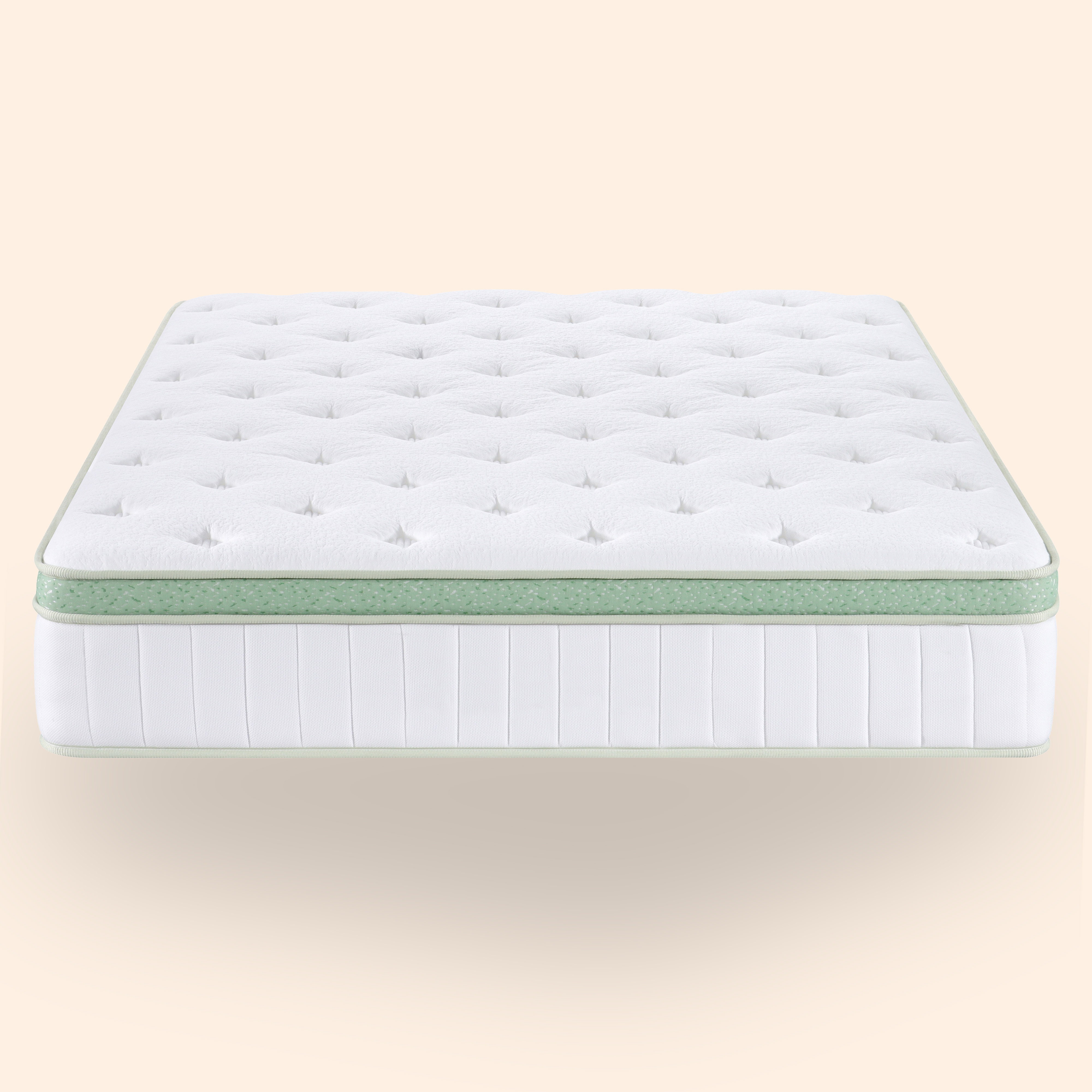The Ginseng 12" Hybrid Mattress blends modern comfort with natural relaxation for a better night’s rest. Its stretch-knit bamboo-blend cover offers a breathable, soft-to-the-touch surface that stays cool through the night. Inside, a unique layer of aromatherapy foam—infused with green tea and agarwood—helps reduce stress while supporting your body. With a medium-firm feel and fresh finish, it’s built for nights that leave you refreshed.
