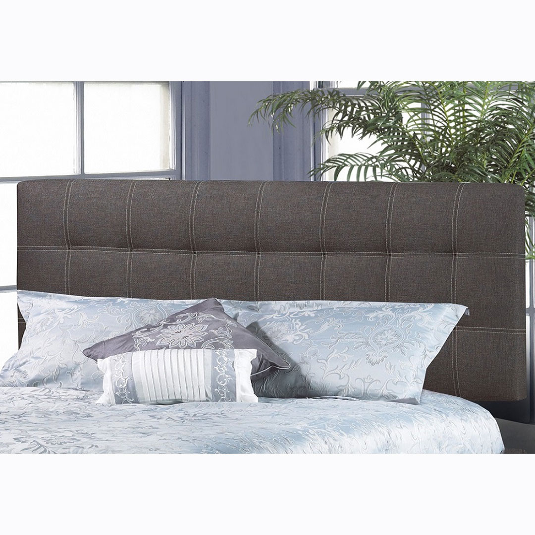This fully upholstered headboard features bold "baseball" stitching to enhance the look of any bedroom. This headboard adds a style of elegance to a comfortable night's sleep. The overall height can be adjusted according to 5 available positions (from 48"H to 66"H).